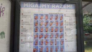 Tablice do nauki języka migowego na przystankach autobusowych w Sosnowcu – fot. UM Sosnowiec