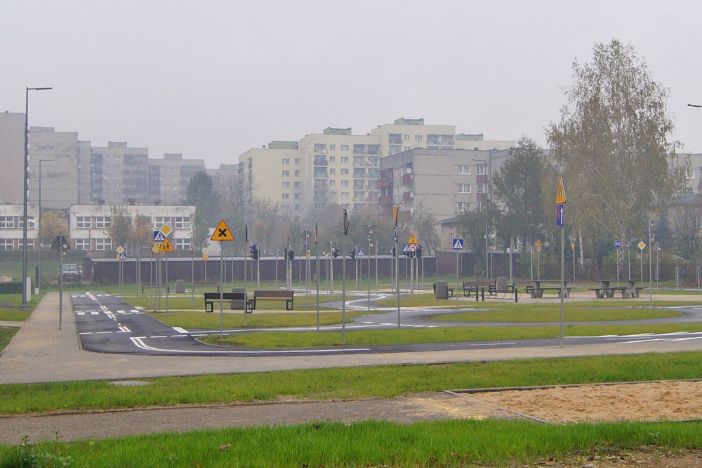 W miasteczku znalazły się m.in. miniprzejazd kolejowy, rondo, słupy z sygnalizacją świetlną czy ścieżka rowerowa. Całość uzupełnia mała architektura: ławki, stoły piknikowe, stojaki rowerowe oraz kosze na śmieci. Cały teren dodatkowo jest ogrodzony i oświetlony.