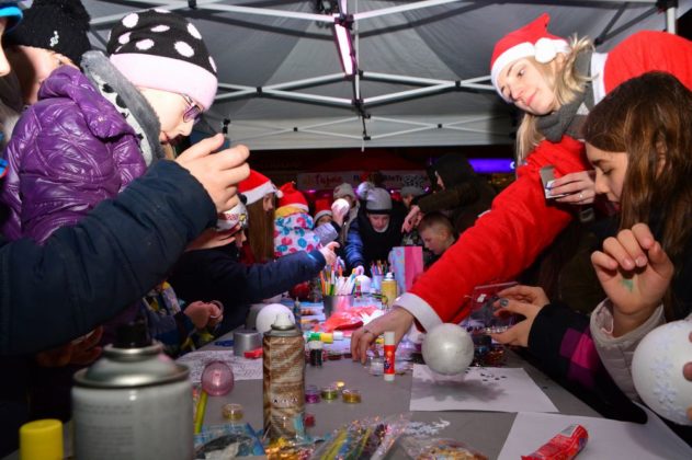 Śnieżynki, które pomagały Mikołajowi, obdarowywały dzieci słodkimi upominkami. O świąteczną oprawę muzyczną zadbał DJ, a w Fabryce Ozdób Choinkowych można było stworzyć dekoracje świąteczne.